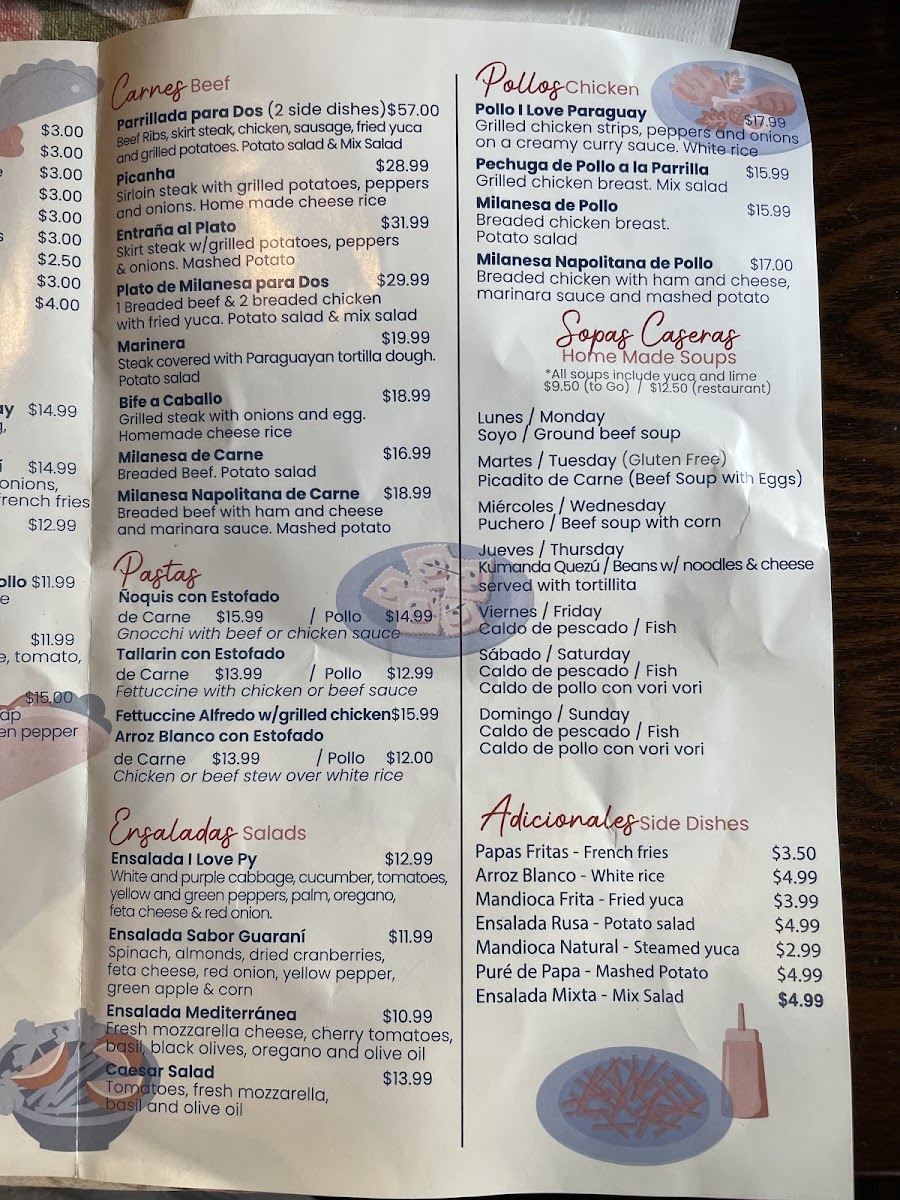 The menu at I Love Paraguay Restaurant showcases a vibrant selection of traditional Paraguayan dishes, prepared with skill and an emphasis on fresh, high-quality ingredients. Highlights include the Chipa Guazu, a creamy corn soufflé that has garnered rave reviews and is often described as a must-try. The restaurant also serves a delectable array of empanadas, offering a delightful mix of flavors that reflect the rich culinary heritage of Paraguay.